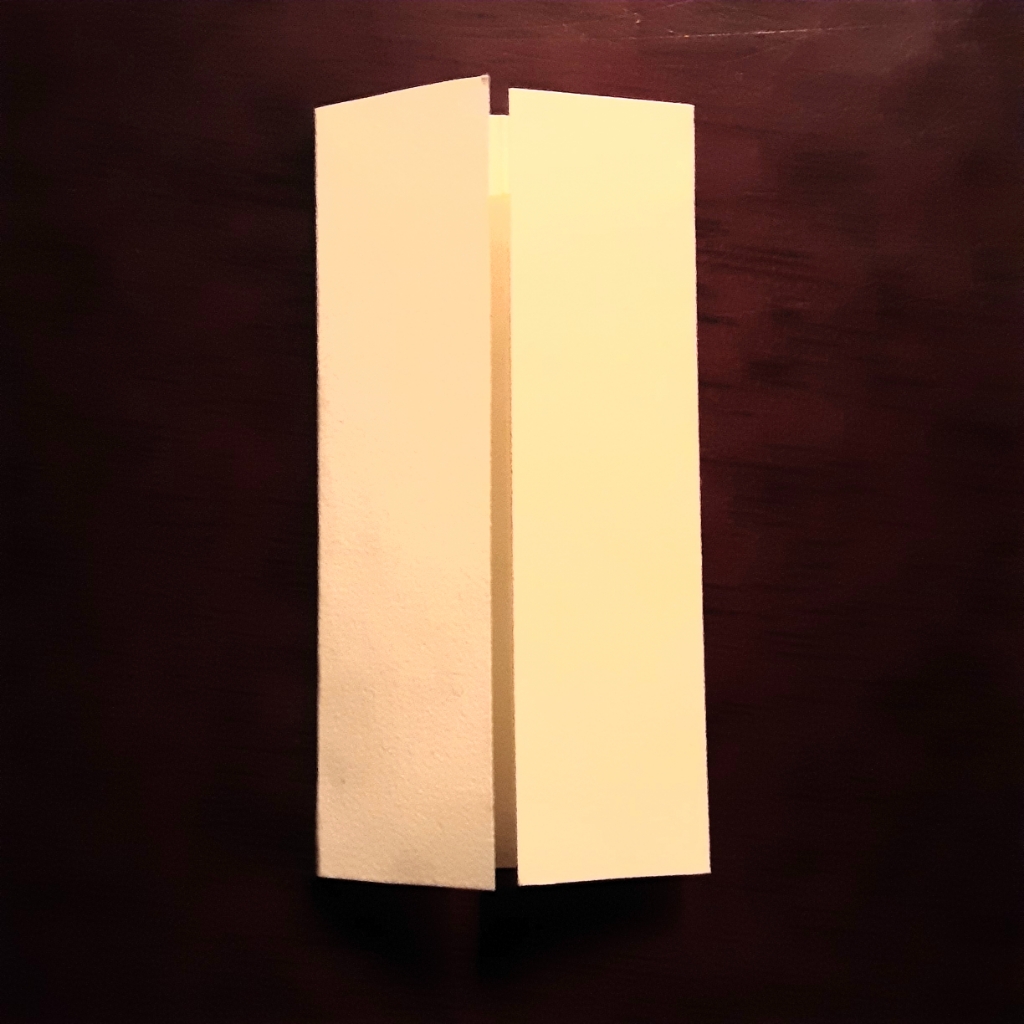 真ん中の線を内側にして、半分に折ります