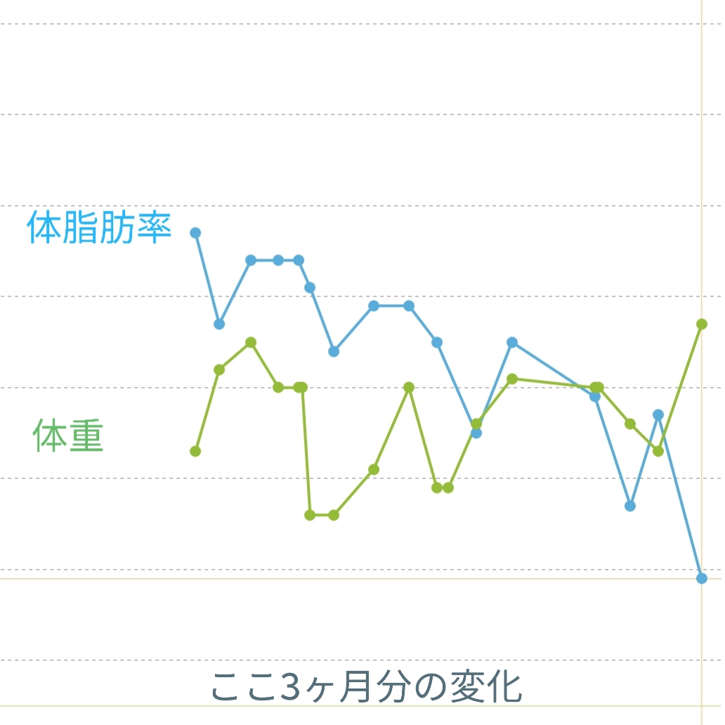 3ヶ月で体脂肪率さがってきてるので良し!でいス