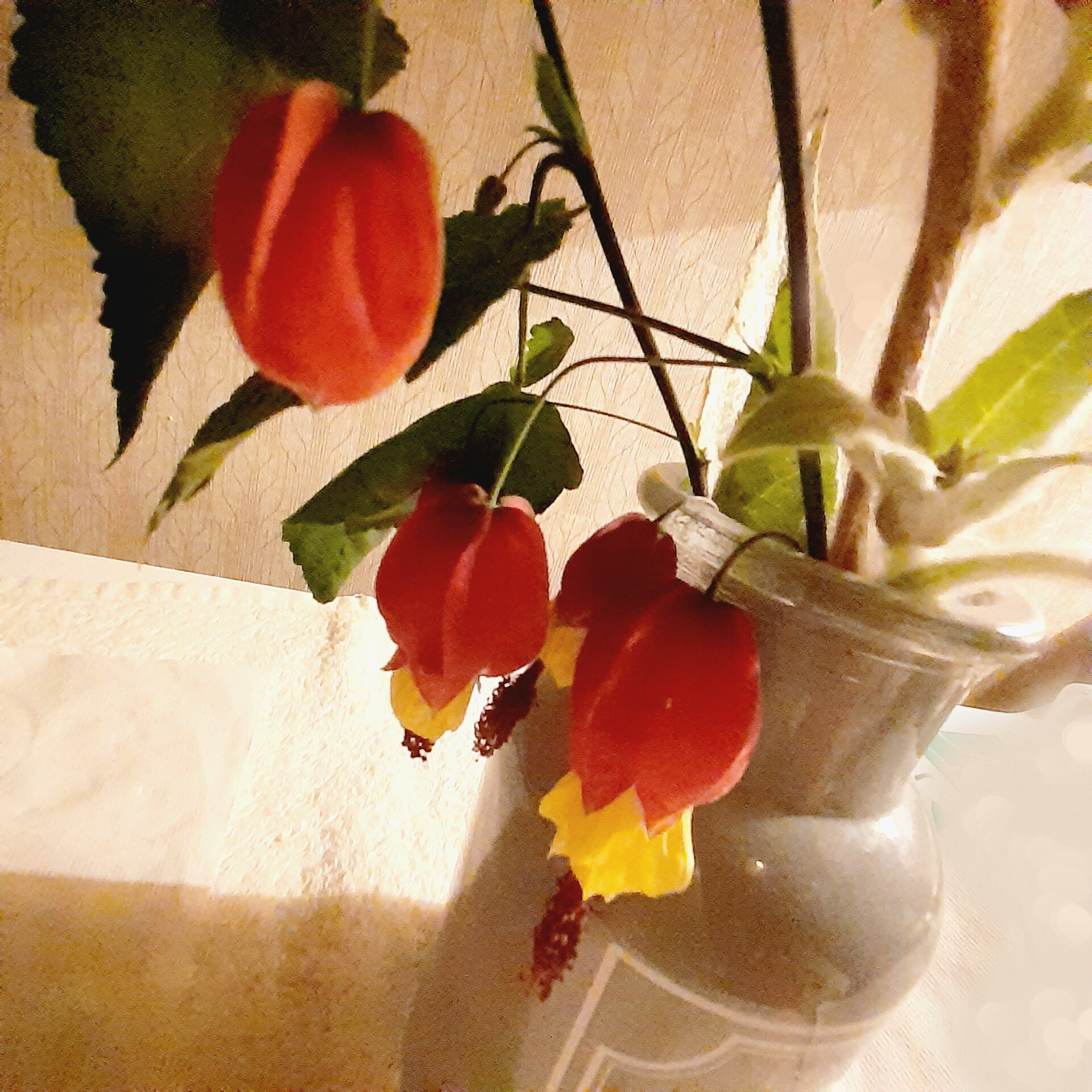 一緒に飾ったウキツリボク(チロリアンランプ)のつぼみが
