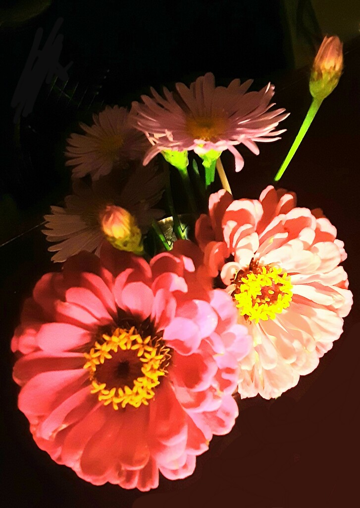 やや薄暗いあかりにて、お花にだけライトを集めて撮ると